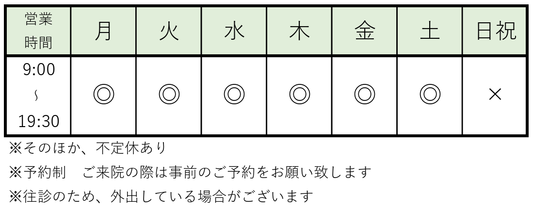 基本的には整体で対応させて頂く場合が多いですが、症状により、鍼、お灸の提案をさせて頂く場合がございます。